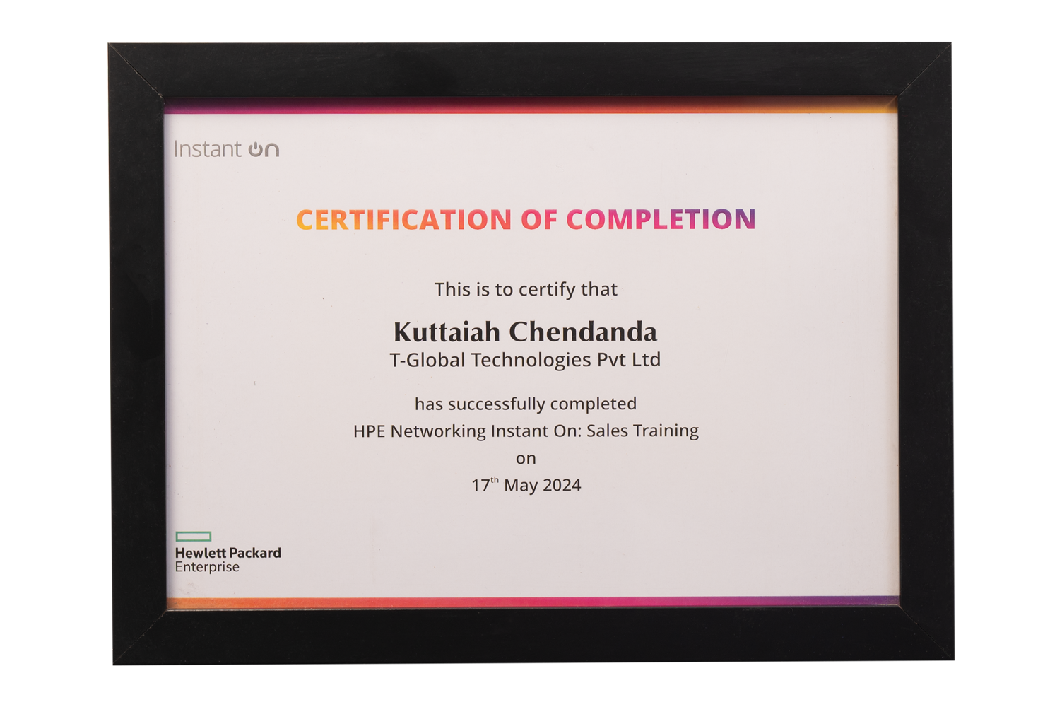 Certified in HPE Instant On sales training for networking solutions and partner enablement