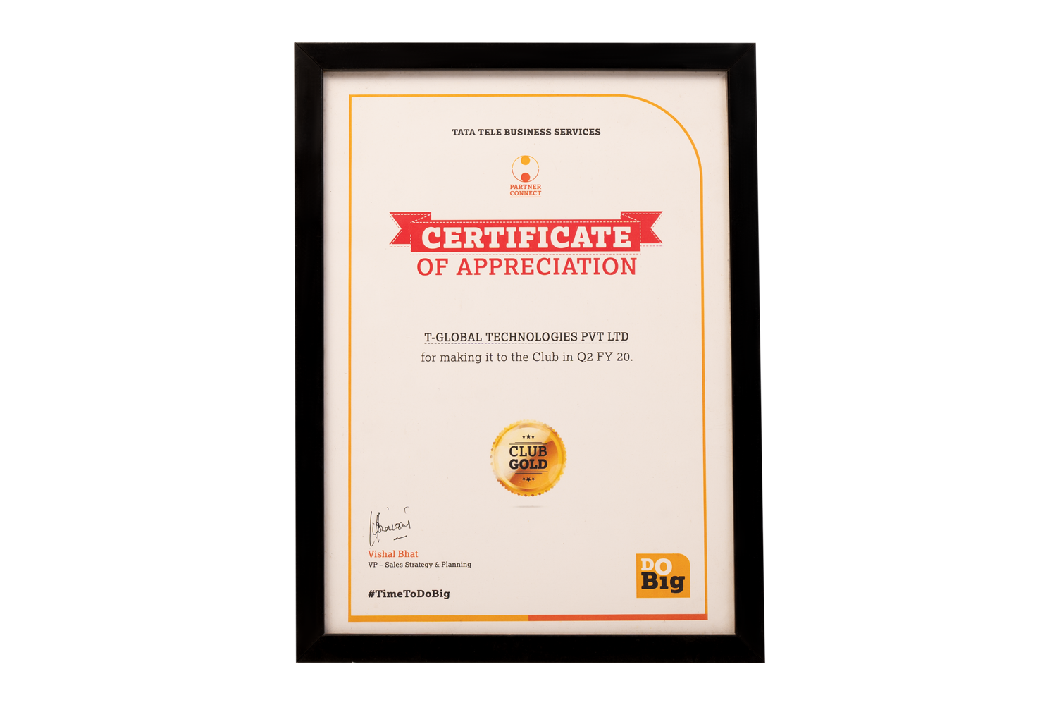 Tata Tele Business Services Club Gold Q3 FY 2020 Awarded by Tata Tele Business Services