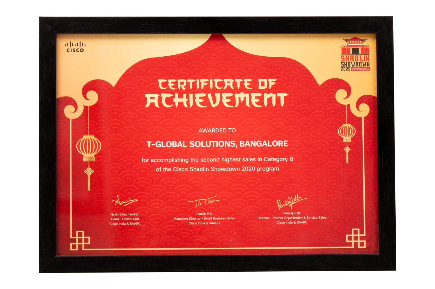 Cisco Shaolin Showdown 2020 Second Highest Sales Category B Awarded by Cisco