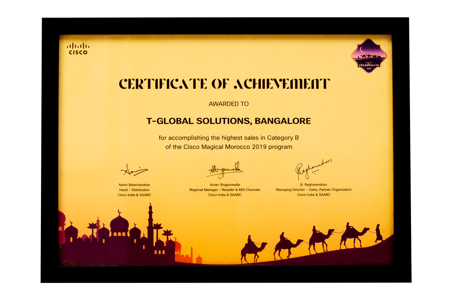 Recognized for achieving highest sales in Category B for Cisco Magical Morocco 2019